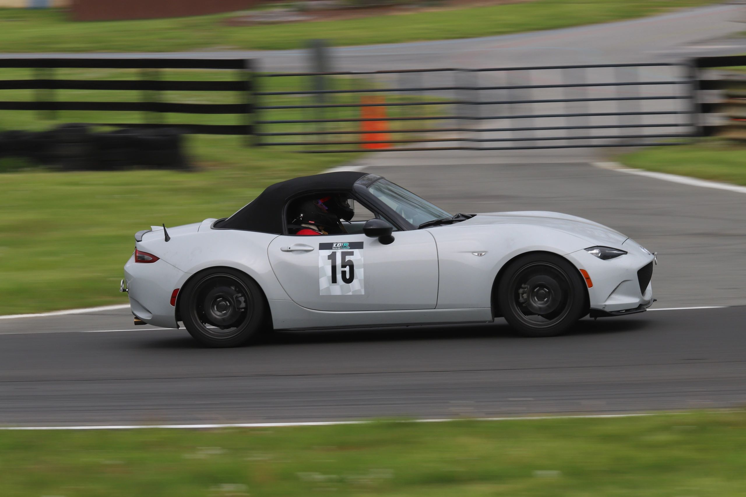 Lightweight track-focused Miata with Ohlins DFV coilovers, Karcepts swaybars, Blackwork Fabworks roll bar, and Race Keeper video system. Available with 15x9 RT660 or 17x10 Goodyear 3R/Hoosier tire setups. Includes 75-100 minutes of seat time, meals, and beverages.